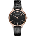 Emporio Armani Kappa Quartz Black Dial Black Leather Strap Watch For Women - AR11064