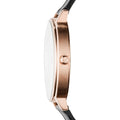 Emporio Armani Kappa AR11047 is a very beautiful and classically designed women's watch with a soft calfskin leather strap from Armani. The watch has a fine watch case of 32mm in diameter and 7mm thickness. The case and bezel are gold-coloured, and the crown has a discreet Armani logo engraved. The Black leather strap has a gold buckle with logo, and measures 14mm in width.