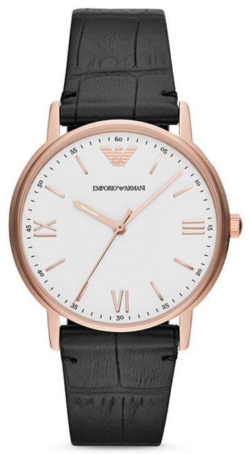 Emporio Armani Kappa Quartz White Dial Black Leather Strap Watch For Men - AR80015