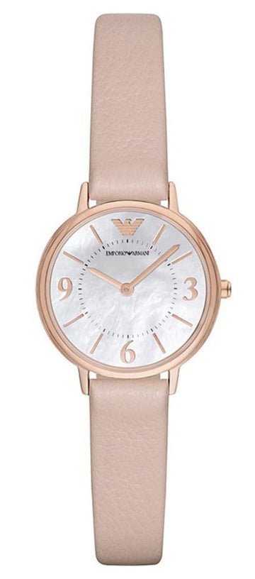 Emporio Armani Kappa White Mother of Pearl Dial Pink Leather Strap Watch For Women - AR2512