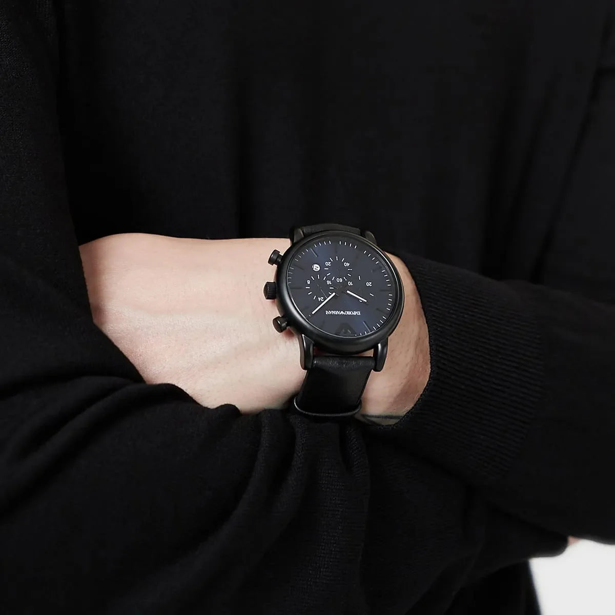 Emporio Armani Luigi Analog Blue Dial Black Leather Strap Watch For Men - AR11351Emporio Armani Luigi Analog Blue Dial Black Leather Strap Watch For Men - AR11351
