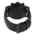 This 46mm Emporio Armani watch features a blue dial with black stick indexes, chronograph movement and black leather strap