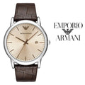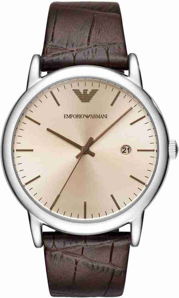 Mens Emporio Armani Luigi AR11096 brown leather strap watch. The perfect watch for an every day time piece and is easy wearing. This Luigi watch has a champagne dial and uses quartz movement.