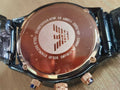 Introducing the EMPORIO ARMANI Chronograph Quartz Men's Watch. With its sleek black dial and precision timekeeping, this watch exudes sophistication and luxury. Its chronograph feature adds functionality to its timeless design, making it a must-have for any man seeking style and functionality. Elevate your wrist game with this exclusive timepiece.