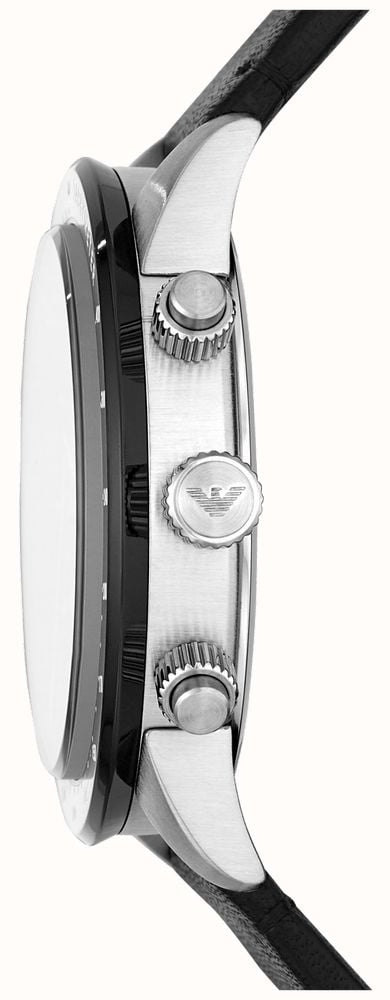 Emporio Armani Mario Chronograph Black Dial Black Leather Strap Watch For Men - AR11243