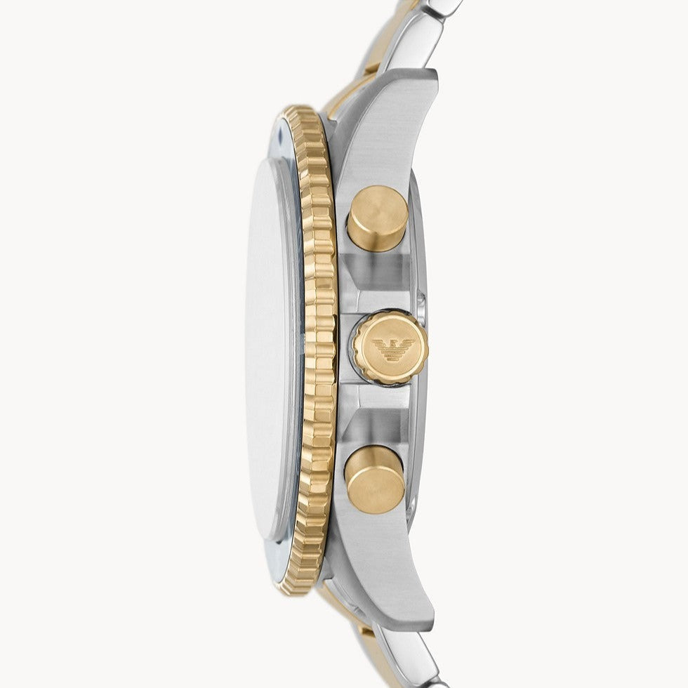 Emporio Armani Mario Chronograph Blue Dial Two Tone Steel Strap Watch For Men - AR11362
