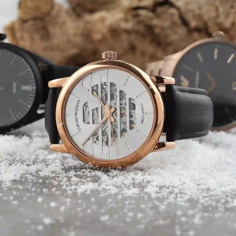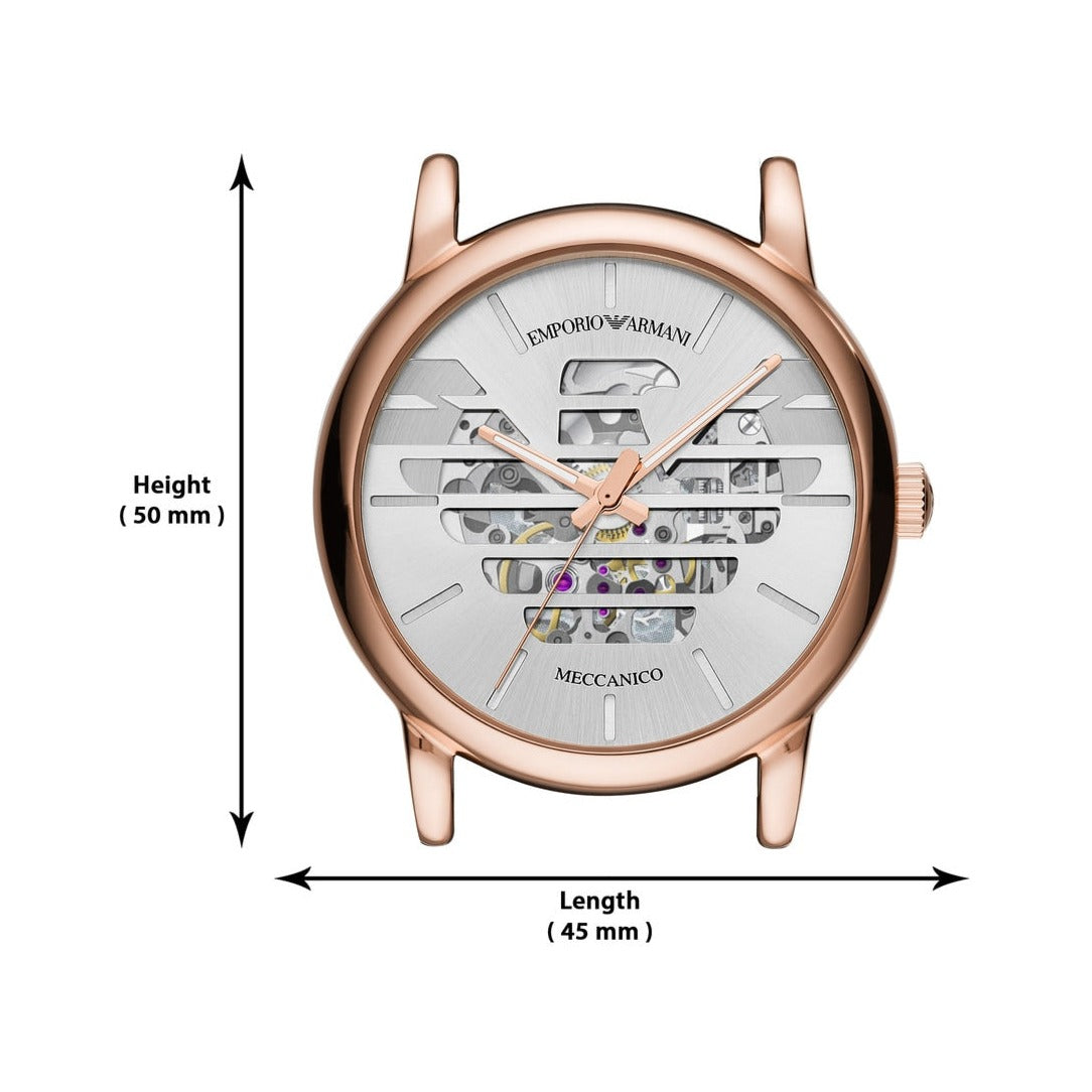 Emporio Armani Meccanico Skeleton Silver Dial Black Leather Strap Watch For Men - AR60031Emporio Armani Meccanico Skeleton Silver Dial Black Leather Strap Watch For Men - AR60031