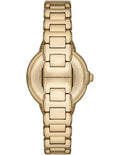 Emporio Armani's 32mm watch features an eggshell sunray dial, three-hand movement and gold-tone stainless steel bracelet. This wristwatch from Armani Exchange is crafted for the moments that matter most. The watch dial is protected with mineral glass and is water resistant up to 50 m. The timepiece works on a quartz movement.