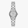• Emporio Armani's 26mm petite stainless steel watch showcases a glossy white mother-of-pearl dial in a round case with a two-hand quartz movement. The sleek stainless steel bracelet makes this a beautiful addition to an ensemble for any occasion.