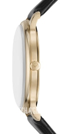 The Emporio Armani AR11601 Minimalist Watch is a perfect blend of elegance and simplicity. Featuring a 41mm gold-tone stainless steel case and a striking green dial, this watch stands out as a refined accessory for any occasion. The black leather band, with a 21mm width, adds a classic touch, while the reliable quartz movement ensures precise timekeeping. Designed with a water resistance of up to 50 meters and equipped with a secure buckle clasp, this timepiece is as practical as it is stylish, making it an ideal choice for the modern gentleman.
