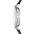 Stainless steel case, Leather strap, Silver dial, Quartz movement, Scratch resistant mineral, Water resistant up to 3 ATM - 30 meters - 100 feet