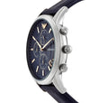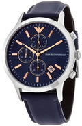 Emporio Armani Renato Chronograph Blue Dial Black Leather Strap Watch For Men - AR11216