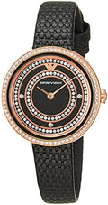 Emporio Armani Rosa Two Hand Black Dial Black Leather Strap Watch For Women - AR11493