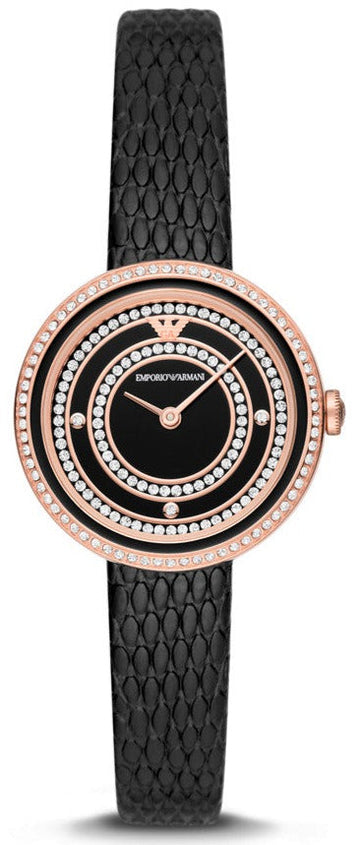 Emporio Armani Rosa Two Hand Black Dial Black Leather Strap Watch For Women - AR11493Emporio Armani Rosa Two Hand Black Dial Black Leather Strap Watch For Women - AR11493