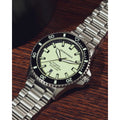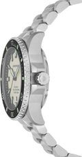 The Emporio Armani Sea Explorer Automatic Silver Stainless Steel Watch AR60083 perfectly combines adventure-ready functionality with sophisticated style. Designed for the modern man, this 42.5 mm timepiece features a striking light yellow Super-LumiNova® dial that remains legible in any lighting, complemented by luminous hands and markers. The robust automatic movement ensures reliable timekeeping, eliminating the need for batteries.
