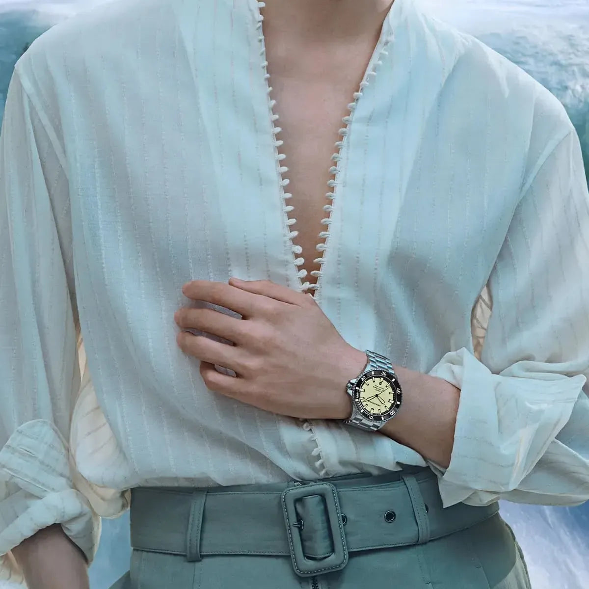 Crafted from stainless steel, the watch is both durable and stylish, while the scratch-resistant sapphire crystal adds an extra layer of protection. Engineered for underwater exploration, it boasts a water resistance of 200 meters, making it suitable for diving enthusiasts. Elevate your collection with a watch that embodies strength, precision, and timeless elegance—perfect for both deep-sea adventures and formal settings.