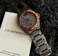 Emporio Armani AR 11178 is a practical and attractive Gents watch from Sigma collection. Case material is Stainless Steel while the dial colour is Grey. This model has got 50 metres water resistancy – it can be submerged in water for periods, so can be used for swimming and fishing. It is not recommended for high impact water sports.