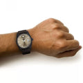 The dial displays the current date of the month. The strap is made of leather. Durable, scratch-resistant mineral glass protects the watch from damage. The watch is waterproof up to 5 Bar. Case color: Black. Width (with crown): 43 mm. Thickness: 11 mm. Warranty: 2 years.