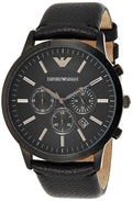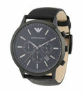 Emporio Armani Sportivo Chronograph Black Dial Black Leather Strap Watch For Men - AR2461