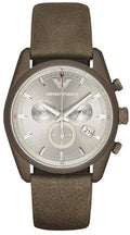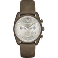 Emporio Armani Sportivo Chronograph Silver Dial Brown Leather Strap Watch For Men - AR6076