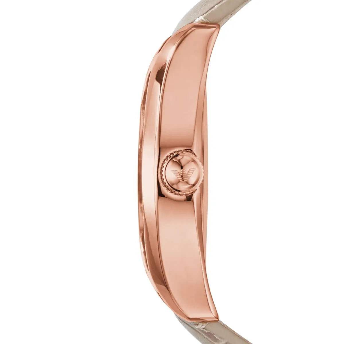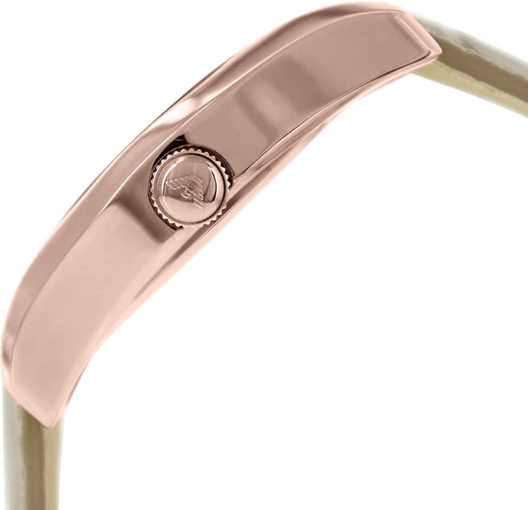 Emporio Armani Classic Beige AR1667 has a fine curved case in polished rose gold with a 42mm dial with a very beautiful white dial. The watch has a patterned beige/sand colored leather strap of 22mm, which gives the watch that extra touch.