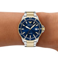 Emporio Armani World Explorer Blue Dial Two Tone Steel Strap Watch for Men - AR11682