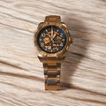 Fossil Bronson Automatic Skeleton Black Dial Gold Steel Strap Watch for Men - ME3257