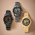 Fossil Bronson Automatic Skeleton Black Dial Gold Steel Strap Watch for Men - ME3257Fossil Bronson Automatic Skeleton Black Dial Gold Steel Strap Watch for Men - ME3257