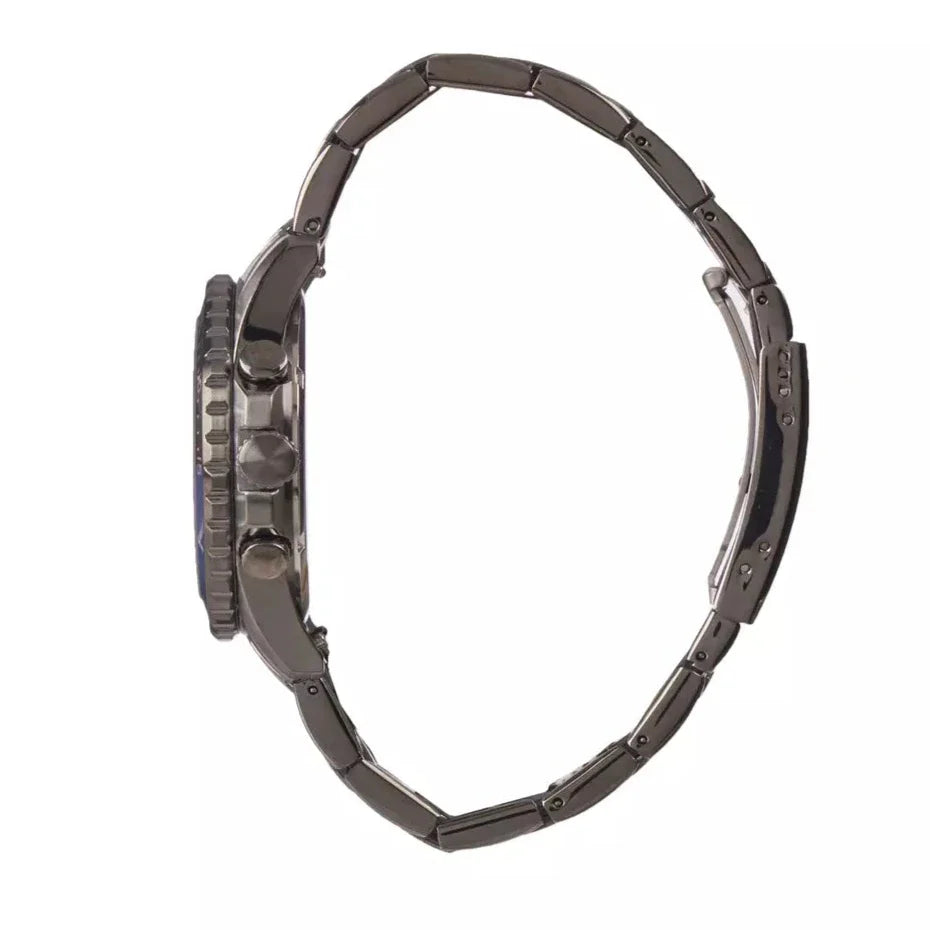 • Smoke stainless steel case with black sunray dial and blue and black bezel detail; smoke stainless steel bracelet band; links can be removed for a customized fit; interchangeable with all 22mm Fossil watch straps