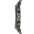 Smoke-plated stainless steel case and bracelet. Fixed smoke-plated bezel. Black dial with luminous grey hands and index hour markers. Arabic numerals appear at the 3, 6, 9 and 12 o'clock positions. Minute markers around the outer rim. Dial Type: Analog. Luminescent hands and markers. Date display between the 4 and 5 o'clock positions. Chronograph - three sub-dials displaying: 60 second, 30 minute and 24 hour. Quartz movement.