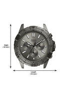 A new addition to your premium repertoire of timepieces, this men’s analog watch from the Garrett collection by Fossil is a must-have wrist essential. The stainless steel strap exudes a steel grey hue that accentuates the look of the timekeeper. Encased in a 44 mm case, the grey round dial is protected by a mineral glass. It features plain three hands, bold stick indices at five-minute intervals, three subdials, two pushers and a crown for time adjustment. Besides, it is completed with a push-button clasp to ensure a secure fit on the wrist.