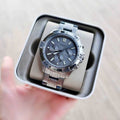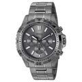 Features: Stainless Steel Case Stainless Steel Bracelet Quartz Movement Mineral Crystal Grey Dial Analog Display Chronograph Function Luminous Hands And Markers 12/24 Hours Display Rotating Bezel Solid Case Back Deployment Clasp 100M Water Resistance Approximate Case Diameter: 44mm Approximate Case Thickness: 12mm