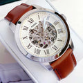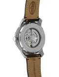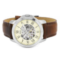 Fossil Grant Automatic Beige Skeleton Dial Brown Leather Strap Watch for Men - ME3099