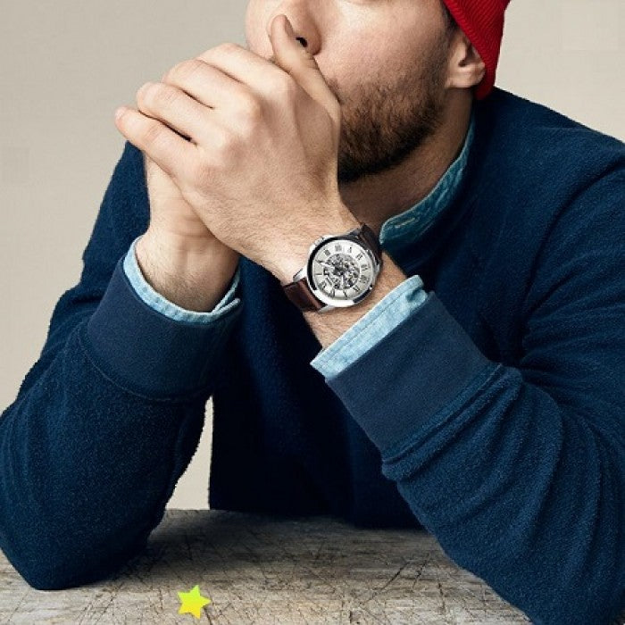 Fossil Grant Automatic Beige Skeleton Dial Brown Leather Strap Watch for Men - ME3099Fossil Grant Automatic Beige Skeleton Dial Brown Leather Strap Watch for Men - ME3099