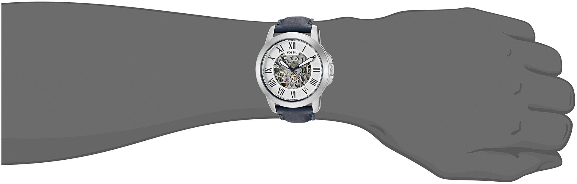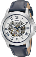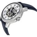Fossil Grant Automatic Skeleton Silver Dial Blue Leather Strap Watch for Men - ME3111