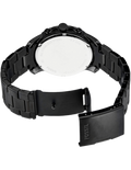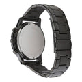 Black-plated stainless steel case and bracelet. Fixed black-plated bezel. Black dial with luminous hands and Roman numeral hour markers. Minute markers around the outer rim. Luminescent hands and markers. Chronograph - three sub-dials displaying: 60 second, 30 minute and 24 hour.
