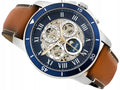 Fossil Grant Sport Automatic Skeleton Blue Dial Brown Leather Strap Watch for Men - ME3140