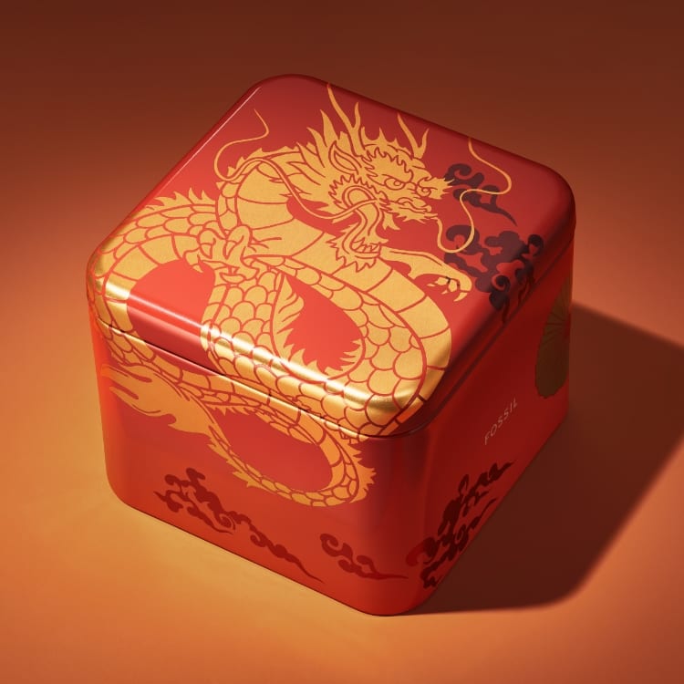 Wear the strength of the dragon this Lunar New Year. This classic Jacqueline watch features a gold-tone stainless steel case and mesh bracelet with a striking red dial showcasing Roman numerals, crystal indices, a dimensional, sculptural dragon with delicate details and a slight antiqued finish.