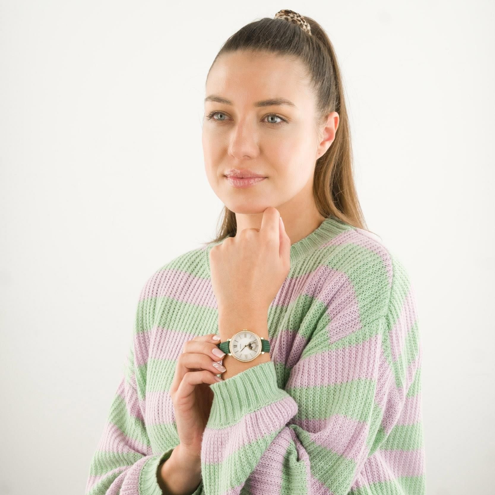 • Case diameter: 36 mm, case height: 8 mm, case colour: gold, dial colour: mother-of-pearl