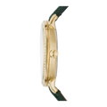 • This high-quality watch has a green leather strap (19 cm length and 14 mm width) with a pin buckle