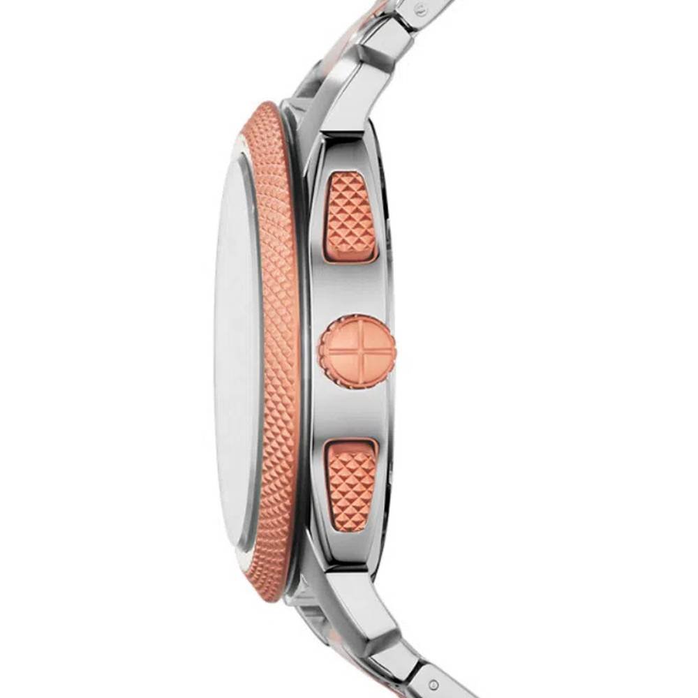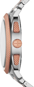 Fossil Machine Gents Watch is a Stainless steel case with a two-tone (silver and rose gold-tone) stainless steel bracelet. Fixed rose gold-tone bezel. Blue dial with luminous rose gold-tone hands and index hour markers. Minute markers around the outer rim.