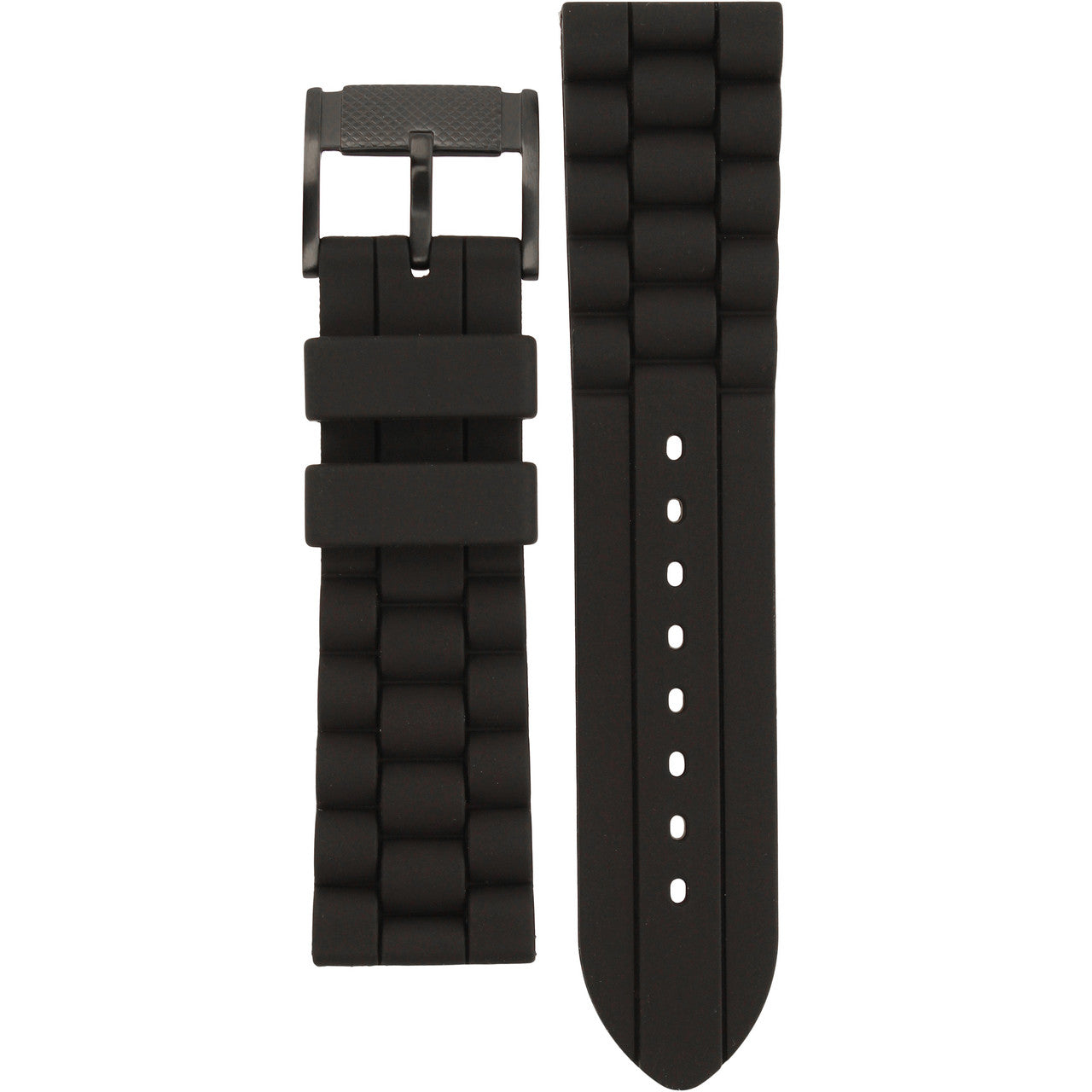 This chronograph watch features a knurled case that’s sure to get noticed. The black silicone strap mimics the classic metal bracelet for a truly interesting timepiece.