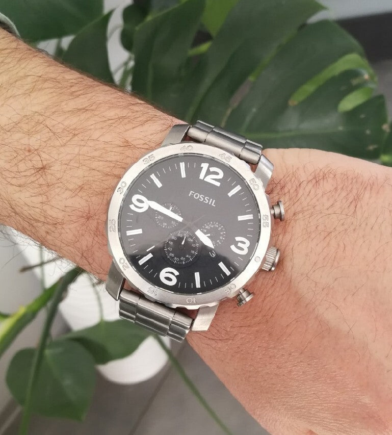 Fossil Nate Chronograph Black Dial Silver Steel Strap Watch for Men - JR1353Fossil Nate Chronograph Black Dial Silver Steel Strap Watch for Men - JR1353