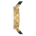 • Green plated leather strap with single prong strap buckle closure; interchangeable with Fossil 16mm watch straps