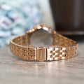 • The watch is secured on the wrist using a rose gold-tone stainless steel bracelet.