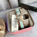 This 38mm Stella features a gold satin dial, multifunction movement and a two-tone mint acetate and gold stainless steel bracelet.