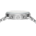 This 42mm Commuter features a black satin dial with stick indices, chronograph movement and a striking steel bracelet.