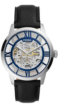 Fossil Townsman Automatic Skeleton Blue Dial Black Leather Strap Watch for Men - ME3200