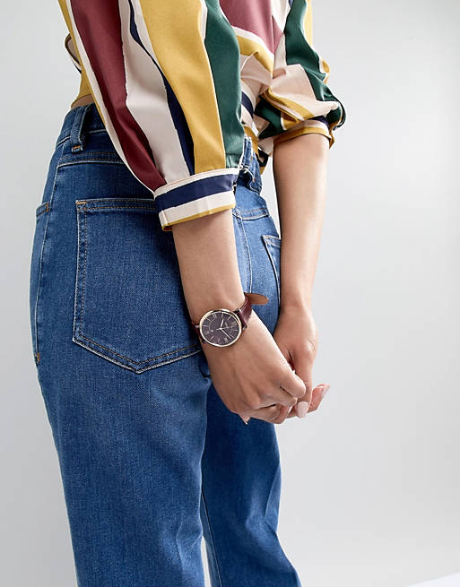 Fossil Jacqueline Burgundy Dial Burgundy Leather Strap Watch for Women  - ES4099