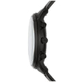 Black ion-plated stainless steel case and bracelet. Fixed black ion-plated bezel. Black dial with luminous silver-tone hands and index hour markers. Roman numerals mark the 6 and 12 o'clock positions. Minute markers around the outer rim. Dial Type: Analog. Luminescent hands. Date display between the 4 and 5 o'clock positions.